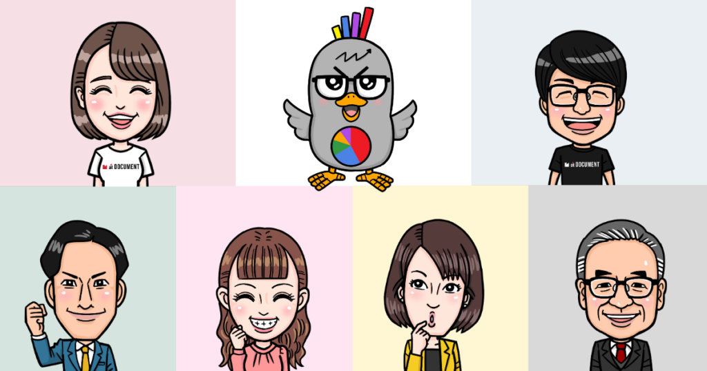 at DOCUMENT(アットドキュメント)ではビジネスに生きる資料作りのスキルを広めるために、公式キャラクターを設定しています。各キャラクターのプロフィールは下記の通りです。